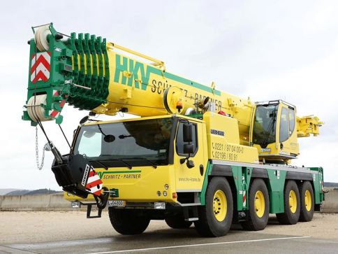 Die neueste Errungenschaft und das Highlight im Fuhrpark der HKV ist der 500-Tonnen-Raupenkran LR1500 von Liebherr. Dieser leistungsstarke Gittermastkran ist momentan der modernste Raupenkran in seiner Klasse auf dem Markt.