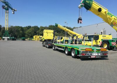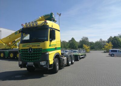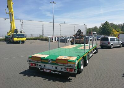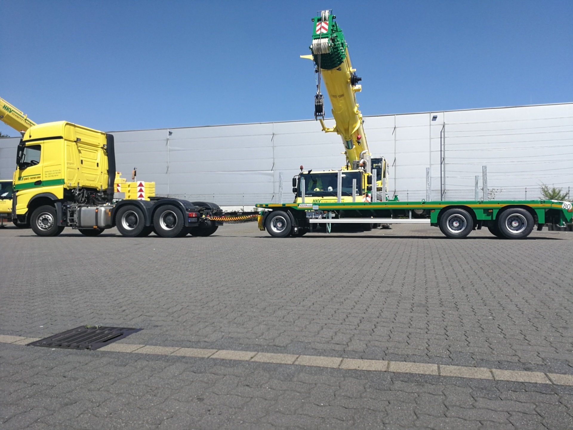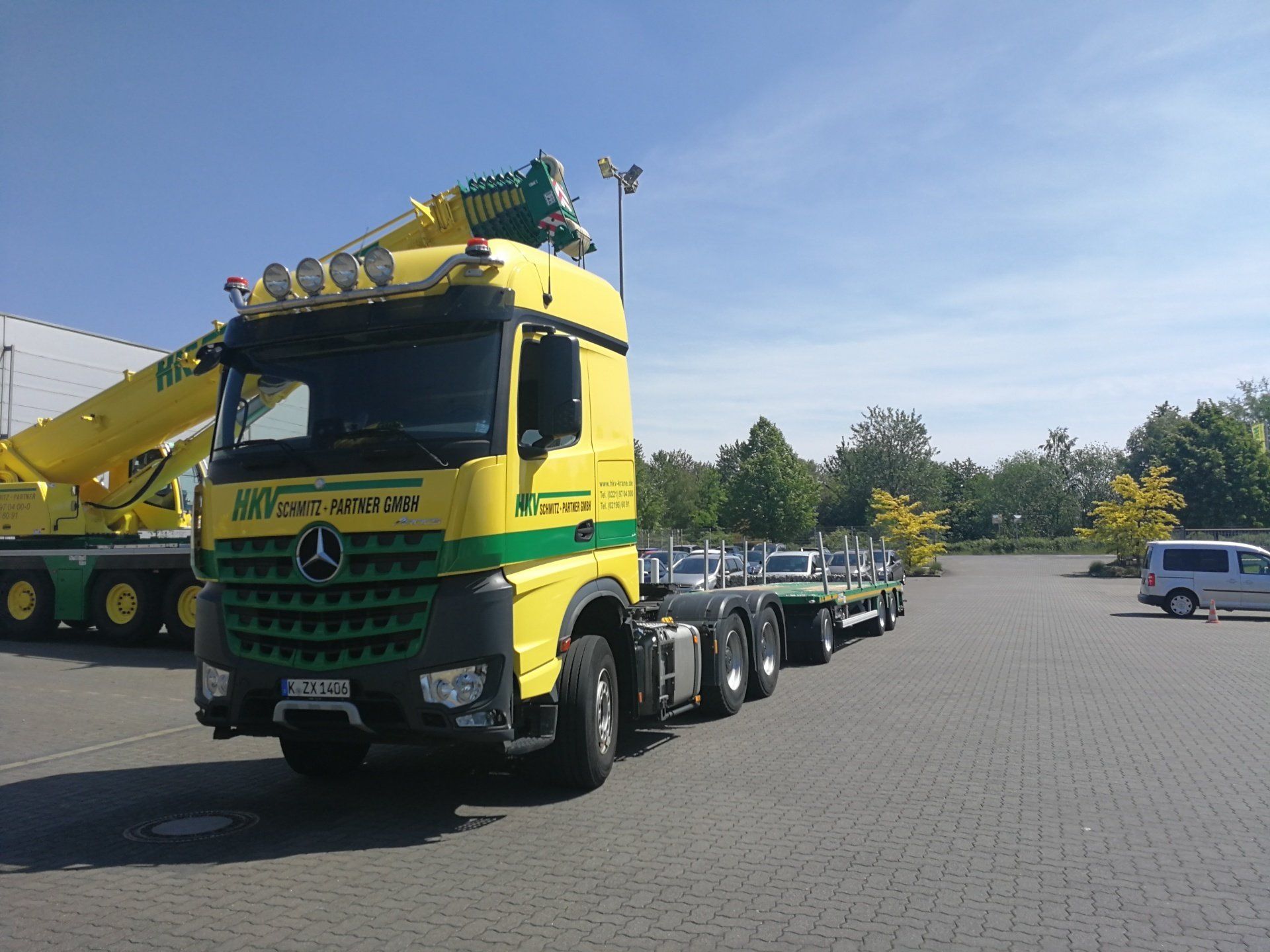 Unsere 3-achs Zugmaschinen mit Pritschenaufsatz können den Anhänger flexibel für unsere Kunden, aber auch für den Transport unseres Kranequipments ziehen.