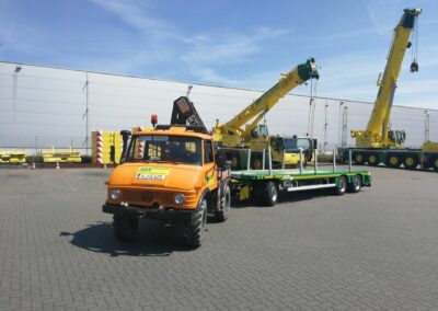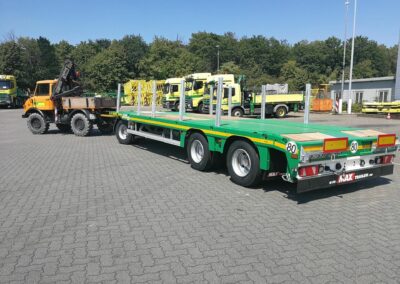 Eine weitere Möglichkeit ist dank unterschiedlichen Zugösen am Anhänger, der Einsatz in Kombination mit unserem Unimog. Für Werkstransporte das perfekte Gespann. Kurz und Flexibel einsetzbar.